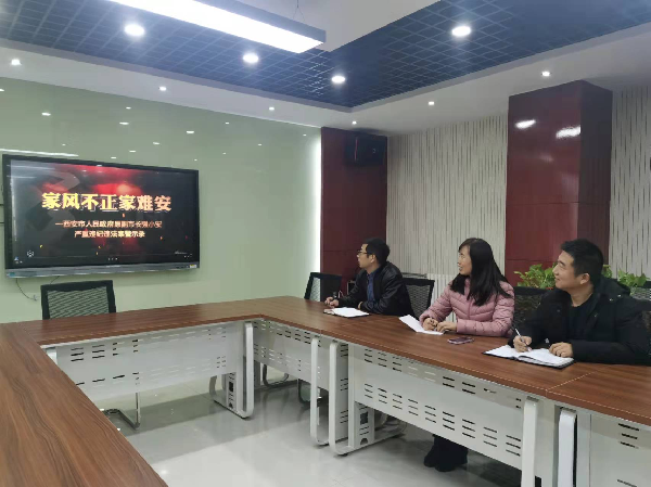 2021年11月12日上午,招投标办公室全体人员组织观看了《家风不正家难安》警示教育片,该片以领导干部强小安严重违纪违法案例为典型,通过讲述人的叙述、纪检监察工作人员的讲述、违纪干部的自述,深刻剖析了党员干部丧失理想信念,以权谋私、腐化堕落,特别是不注重家风教育,持身不严,家风不正,纵容家人、亲属违法乱纪,最后走上犯罪道路,令人震撼、发人深省。