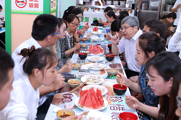 据悉,毕业生与全体校领导、各二级学院党政领导、辅导员、后勤管理服务人员在校内四个食堂包了上万只饺子,一同分享欢乐,共话美好未来。