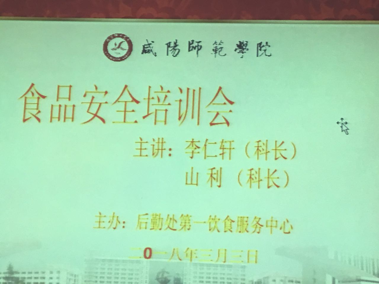 接着,咸阳市渭城区市场监管局食品稽查一科山利科长对各种食品储的藏要求,食品加工制作的规范要求,食品添加剂的使用要求,饭堂剩菜剩饭的规范处理等进行了强调。