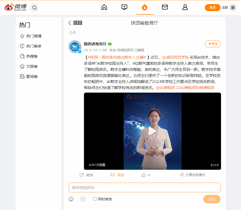 陕西教育厅报道taptap点点采用AI技术,推出多语种“AI数字校园主持人”。