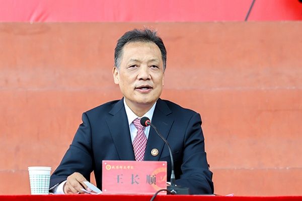 王长顺代表学校向全体新生致以最热烈的欢迎和最诚挚的祝贺。他指出,青年是国家的未来、是民族的希望,是推动社会进步的重要力量。“立德树人”是教育的根本任务,是教育者的崇高使命,更是学校在强国建设、民族复兴伟业新征程上的责任担当。他勉励同学们以大学为人生新起点,以奋斗为青春底色,在这片充满希望的土地上书写属于自己的辉煌篇章。
