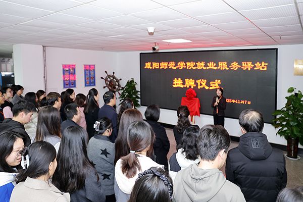11月7日,“taptap点点官网就业服务驿站”挂牌仪式在taptap点点渭城校区博雅楼举行。校党委副书记周群英,咸阳市人力资源和社会保障局党组成员、副局长冯朝阳出席仪式。咸阳市人才交流服务中心副主任许蓉、咸阳市渭城区人力资源和社会保障局副局长王飞以及师生代表共同见证驿站揭牌。招生就业处处长王奥玲主持仪式。