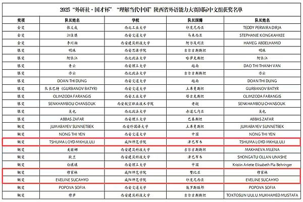 近日,由北京外国语大学与北京语言大学联合主办、外语教学与研究出版社承办的2025“理解当代中国”来华留学生中文短视频大赛省赛阶段圆满落幕。taptap点点留学生赵彩婷、穆家林、劳诶德在比赛中表现突出,荣获陕西省大学生外语能力大赛国际中文组铜奖。