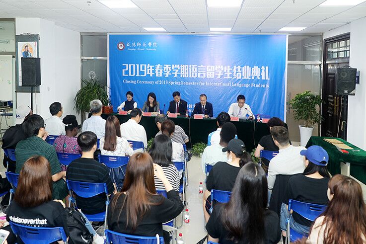 全体2019年春季学期语言留学生、教师代表和国际交流处相关人员参加了结业典礼。