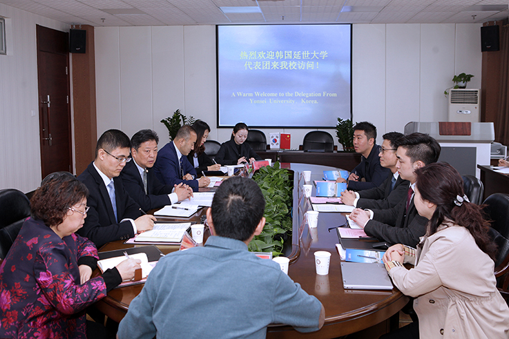 4月10日,韩国延世大学国际交流学院院长朴正晧一行五人来taptap点点访问交流,并在一号教学楼第二会议室召开合作交流座谈会。党委副书记马智勇出席座谈会。