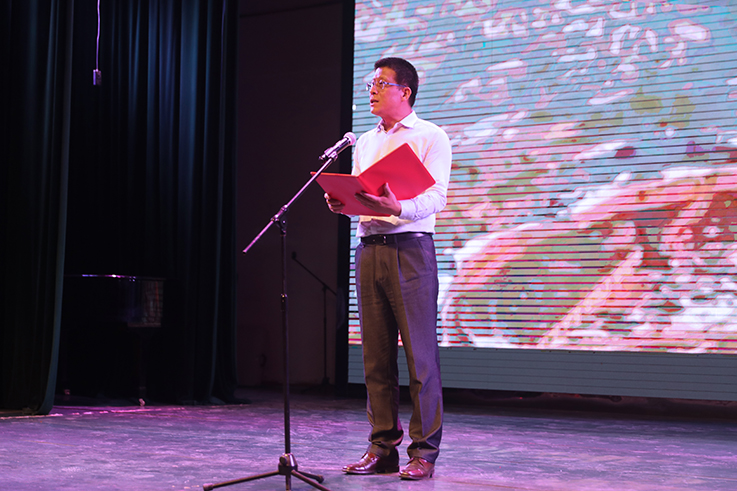 比赛现场,赵万东深情地朗诵了《沁园春雪》,并鼓励全校师生要继续提升文化活动的层次和品位,打造特色鲜明的艺术活动品牌,做好宣传展示工作,从文化育人角度大力提升学校的社会影响力和美誉度。