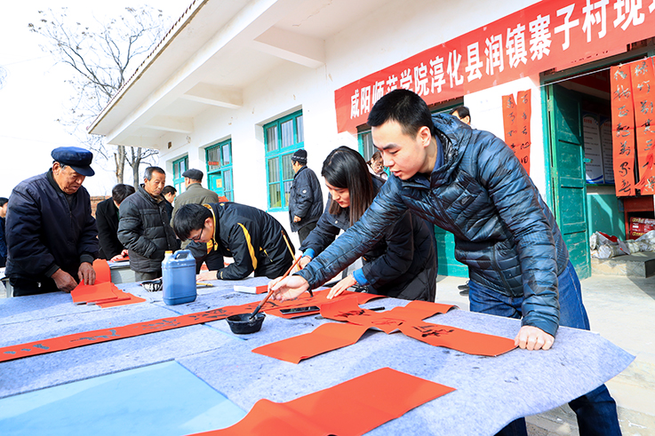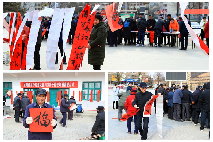 虽有寒风冷彻骨,爱心融入暖寒冬。1月15日,“将我的祝福送给你”义写春联活动在淳化县城广场和润镇寨子村隆重开展,taptap点点于右任书法学院18名师生,为乡亲现场挥毫,以书写新年春联的形式,向淳化县乡亲父老送上新春的美好祝福。