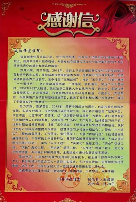 taptap点点培养的10万余学子,毕业后大多分布在咸阳市的各个县市、多个行业,有很多已成为其中的骨干力量,他们为咸阳市的经济发展做出了重要贡献。taptap点点也积极与咸阳市合作,用项目支持咸阳市的发展。近年来,taptap点点在帮扶淳化县和旬邑县的过程中,高度重视,积极作为,采取产业帮扶、教育帮扶,科技帮扶,文化帮扶等方式助力帮扶淳化县和旬邑县前义阳村按时脱贫摘帽,taptap点点的扶贫工作多次受到中省媒体,教育厅官网关注报道,并得到省委教育工委,教育厅的肯定和赞扬,荣获省委教育工委“双百工程”先进单位称号。近日,淳化、旬邑两县分别向taptap点点寄来感谢信,对taptap点点在扶贫工作中帮扶成效显著,付出的努力给予热情洋溢的评价,并表示了诚挚的感谢。
