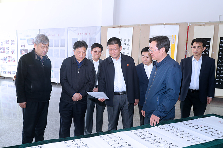 4月3日,校党委书记赵万东,校长舒世昌,校党委副书记马智勇、袁也,纪委书记王启和,副校长吕广利、毛龙灿参观了于右任书法学院举办的“书润新春、墨香万家”——于右任书法学院2019年“三个一”书法实践系列活动成果展。