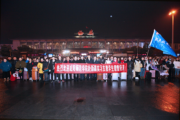 在西安火车站,王副校长代表学校对护送学生返校的新疆伊犁州霍城县教育局陈华芳主任表示感谢,欢迎支教学生顺利归来,赞扬他们在新疆的杰出表现,鼓励同学们返校后坚定志向、践行梦想,不怕困难、脚踏实地,努力学习、勇于实践。