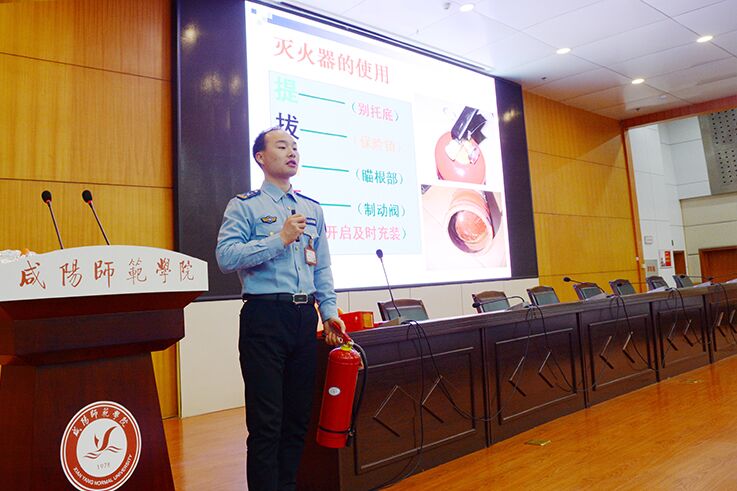 3月20日,陕西宣安消防服务中心教官段洋洁为化学与化工学院全体师生作防火知识培训。