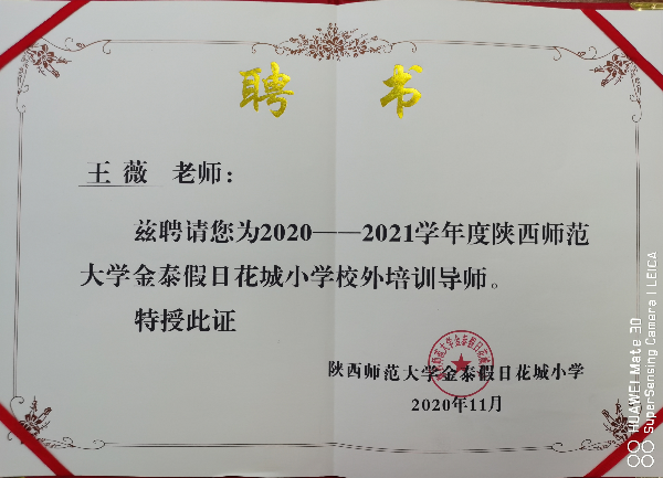 2020年11月12日至13日,我院社会工科普基地负责人、陕西省妇女研究会家庭教育专委会委员王薇副教授受邀前往西安市陕西师范大学金泰假日花城小学、宝鸡市陈仓区慕仪中学和为小学家长、初中生进行科普培训。王薇副教授同时被聘为西安市陕西师范大学金泰假日花城小学和宝鸡市慕仪中学的校外培训导师。