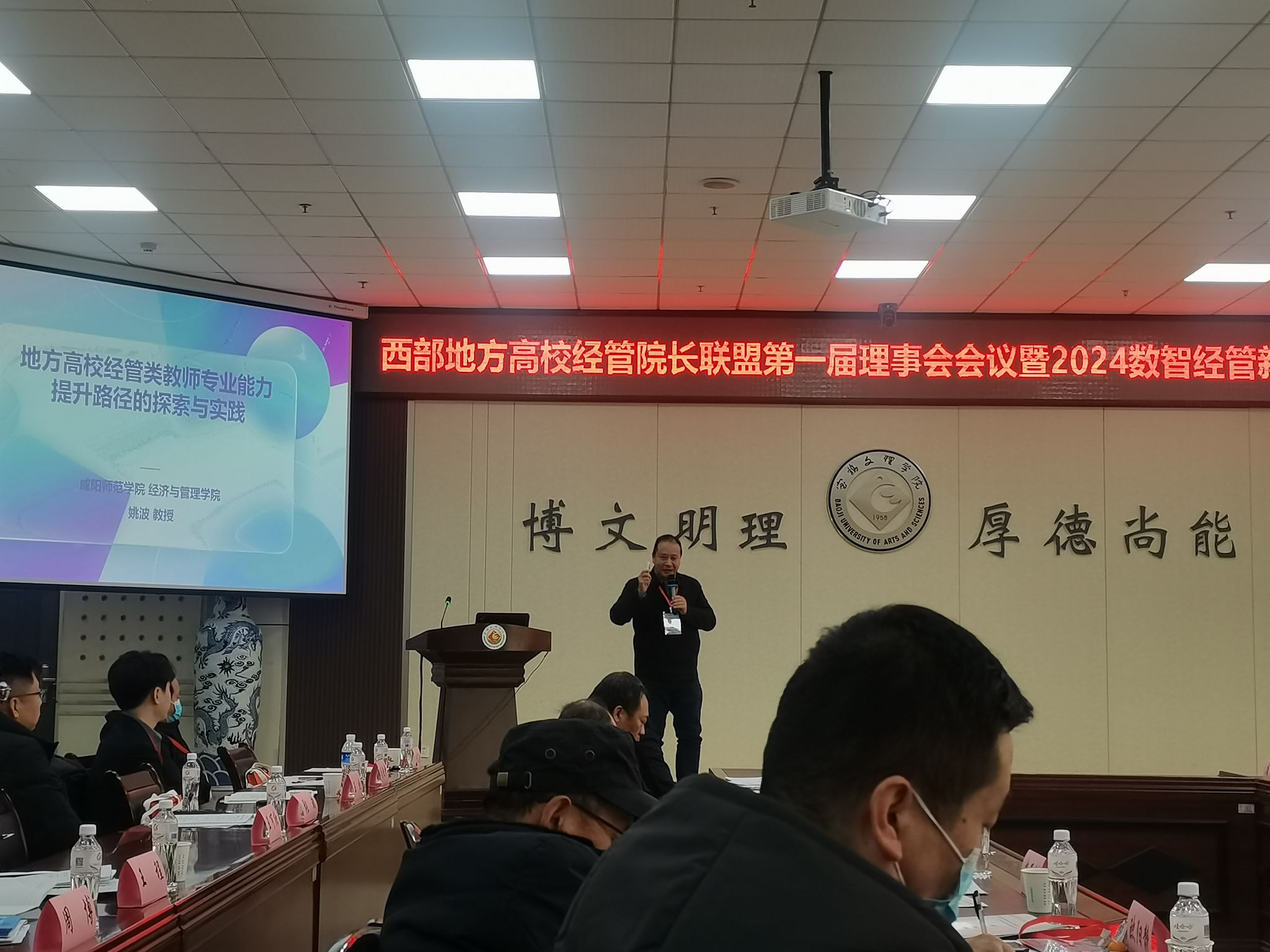 2023年12月31日,由中国西部研究与发展促进会数字经济专业委员会主办,宝鸡文理学院经管院承办的“西部地方高校经管院长联盟第一届理事会会议暨2024数智经管新年论坛”在宝鸡文理学院举行。地方高校经管院院长与数智教育领域专家学者齐聚一堂,开展系列学术研讨和实践经验分享,共话推进经管类专业发展的美好愿景。
