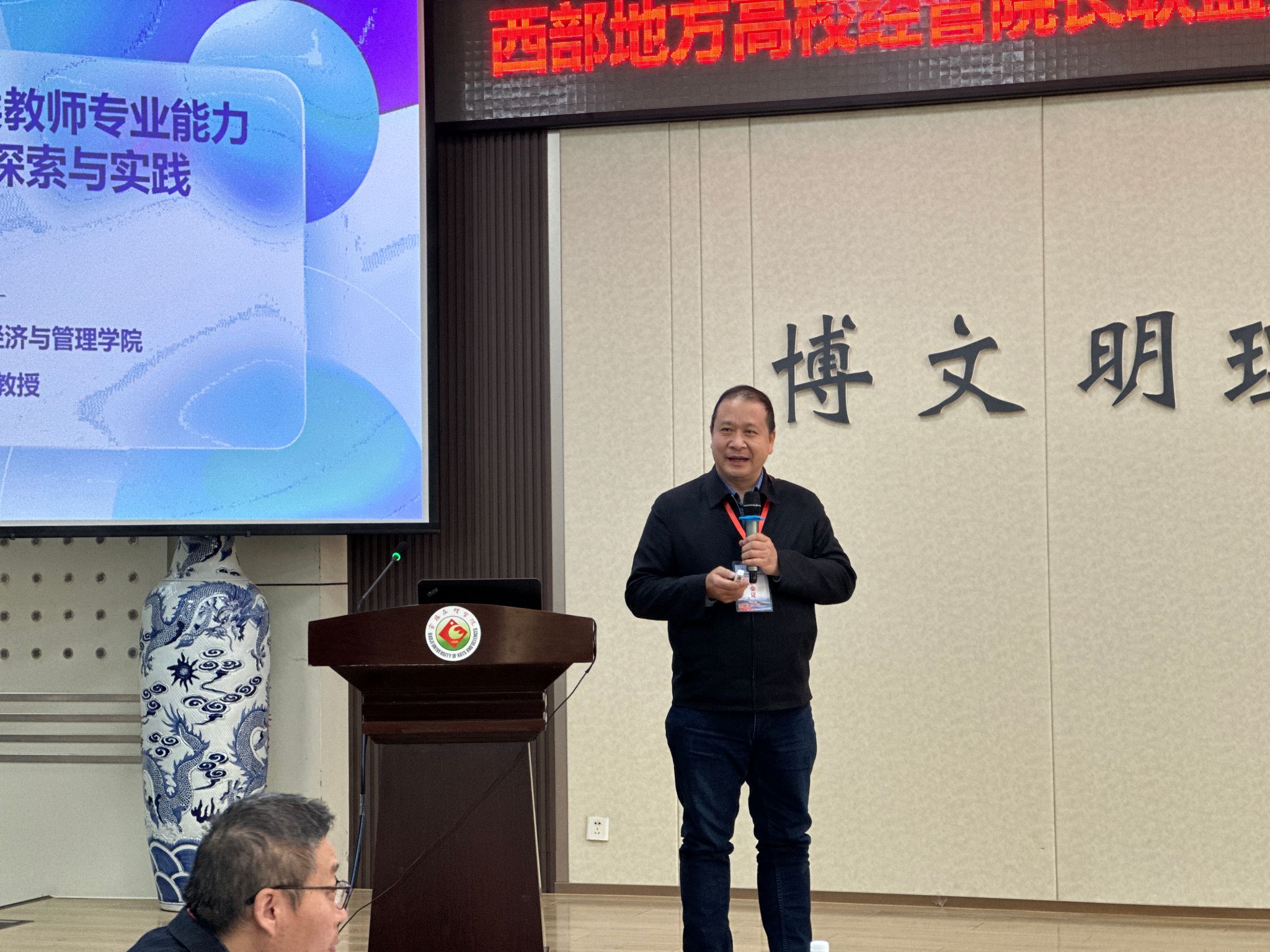 我院姚波院长出席会议,并围绕会议主题作《地方高校经管类教师专业能力提升路径探索与实践》的主题报告。姚波院长指出,我院面向建设教育强国的历史新征程,面对数智化时代到来带来的新机遇,在国家地方经济发展人才需求和taptap点点官网教育发展的双重推动下,近几年不断探索与实践地方高校经管类教师专业能力提升的路径,逐渐形成了“制度创新、培养支撑、实践锤炼”的师资队伍建设思路,通过明确育人使命、创新制度机制、重构培养方式、构建多维平台等方法不断提升教师教学能力和实践能力,取得了较为显著的效果。