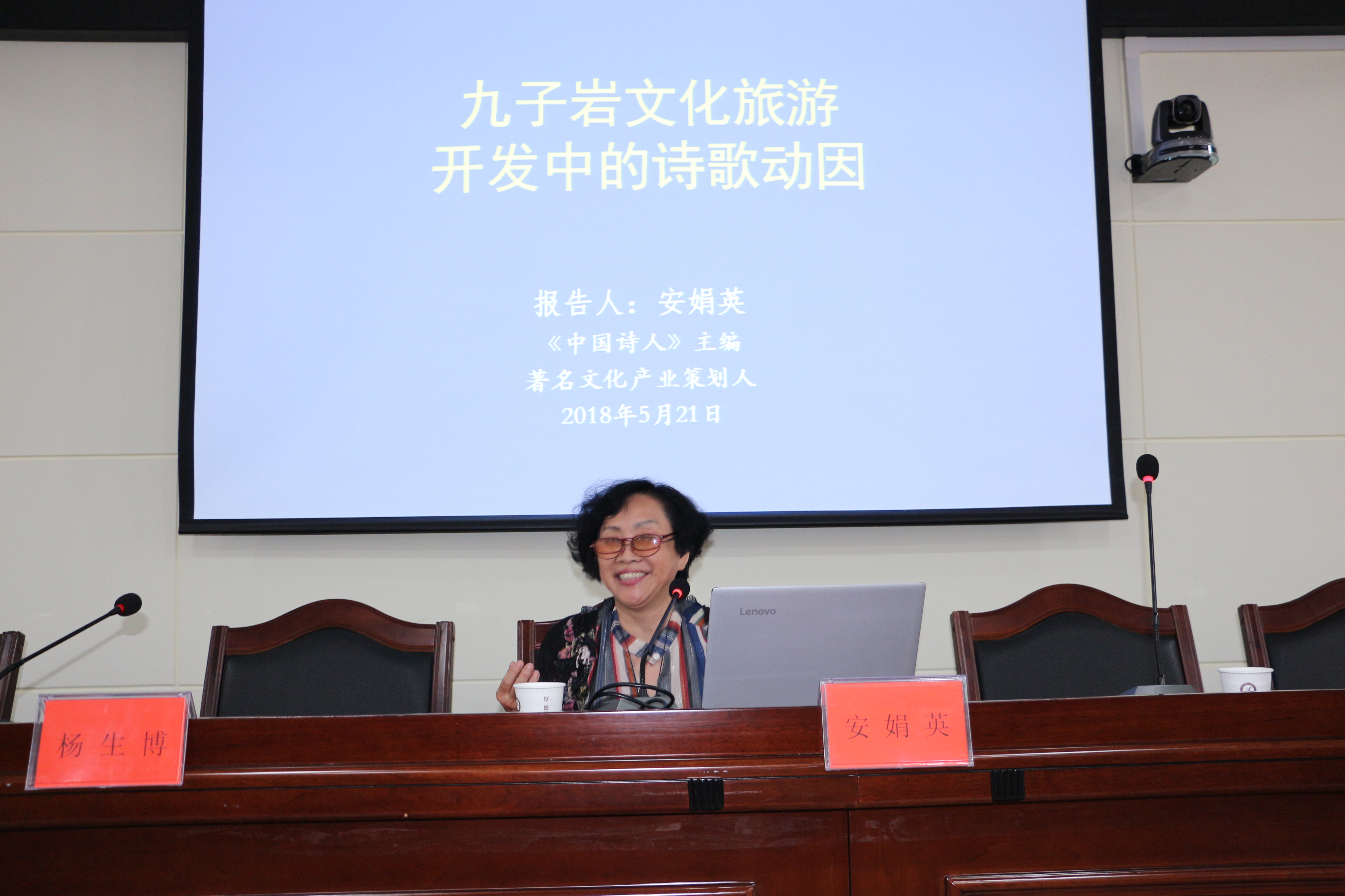 5月21日,著名旅游文化策划人安娟英应邀,以《九子岩文化旅游开发中的诗歌动因》为题为taptap点点做学术报告,经济与管理学院院长杨生博主持报告会。