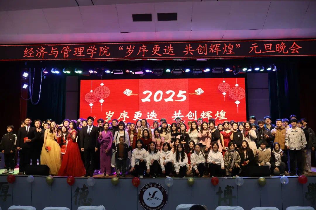 为迎接2025年元旦到来,丰富校园文化生活,12月28日,我院在艺术楼演播厅举办“岁序更迭 共创辉煌”元旦晚会 。