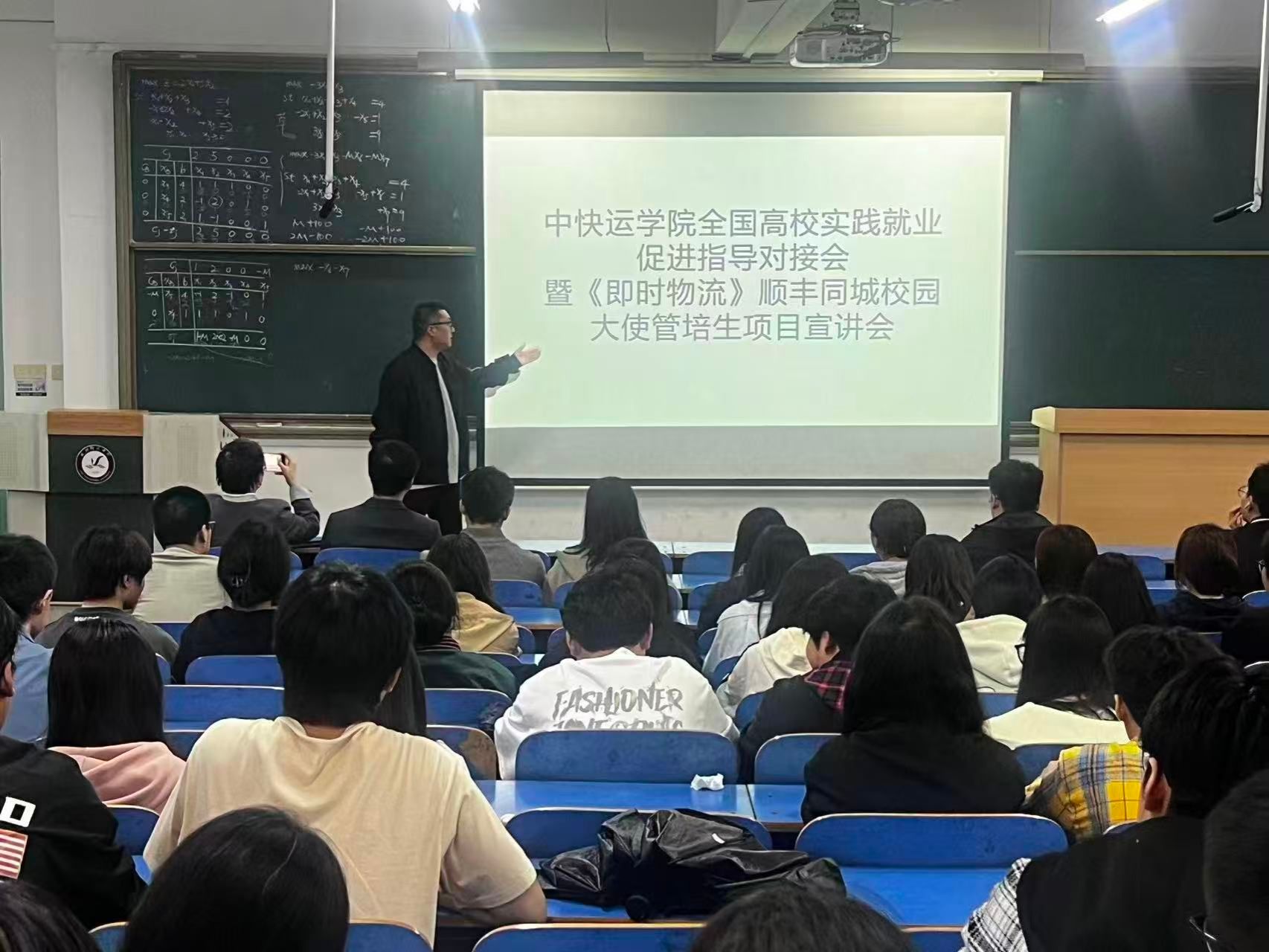顺丰同城招聘负责人王经理,通过企业宣传片和精彩的PPT演示,全方位、多角度地向在场同学介绍了顺丰同城的企业文化、业务生态、行业领先优势以及未来的战略布局,重点讲解了本次校园招聘的职位需求、发展路径、薪酬福利体系以及极具吸引力的“校园大使管培生”项目,详实的介绍让同学们清晰了解了职业发展的可能性与上升空间,感受到了顺丰同城对青年人才的重视与渴望。