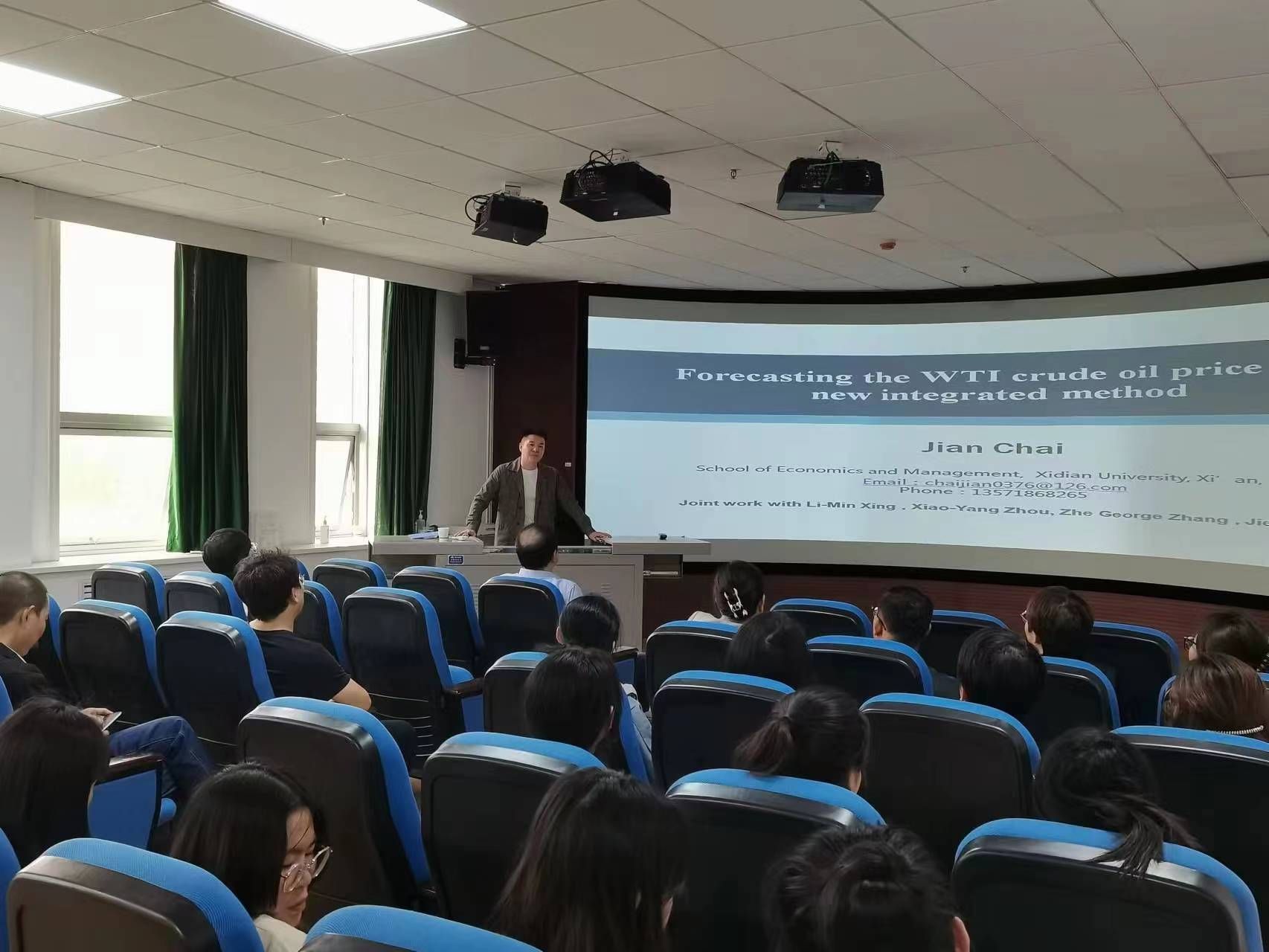 学术报告中,柴建教授以“一种新的综合集成预测技术及其在油价预测中的应用”为题分享经管类论文科学选题、研究过程、研究方法等写作技巧和写作经验,以及做科学研究的心得,并与我院相关专业教师就论文写作技巧、研究选题及学术热点进行深入交流。此次学术报告,将有助于开拓我院师生科学研究视野,提升论文写作水平。