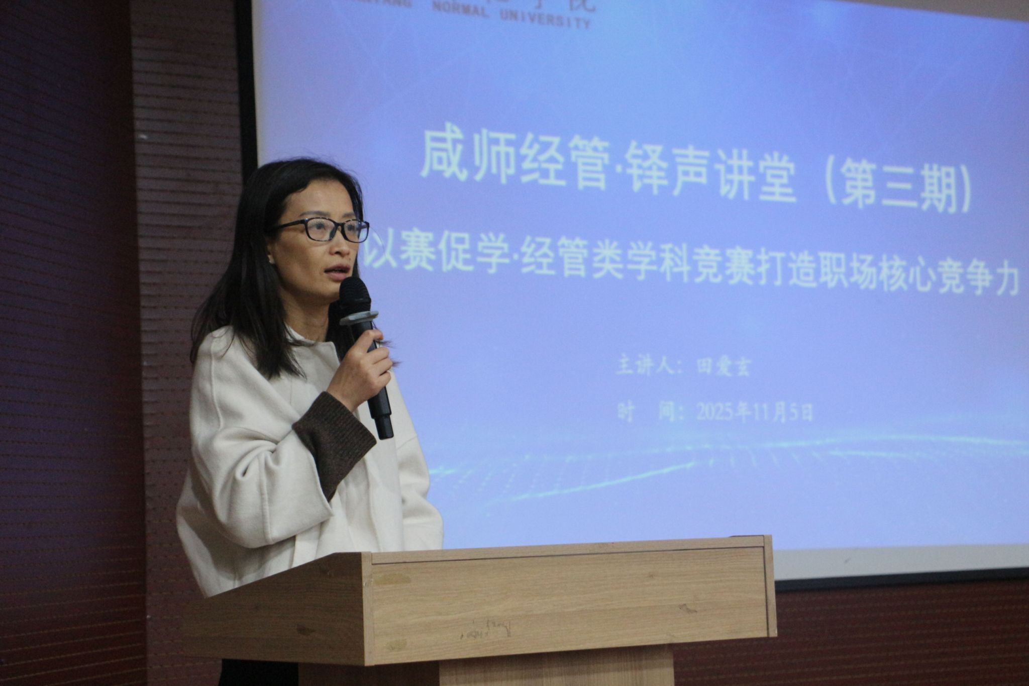 报告中,田爱玄老师紧扣“以赛促学”逻辑,深刻阐释了学科竞赛作为连接课堂与职场关键“练兵场”的核心价值。她不仅为同学们精准推荐了十余项教育部认可、适合经管学子参与的高质量竞赛,更从“如何起步”到“如何胜出”的全流程视角,结合往届优秀学子的成功案例,对赛事筹备、团队组建、项目设计及现场答辩等关键环节进行了细致梳理,将抽象的竞赛过程转化为清晰的行动指南。整场讲座内容翔实,同学们反响热烈。
