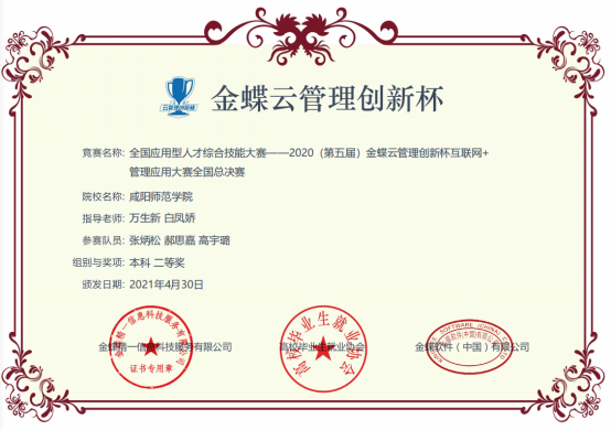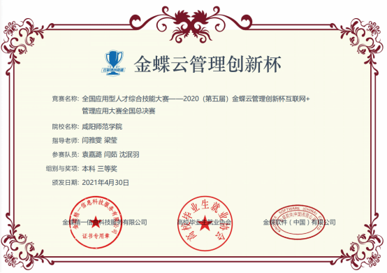 以赛促教,重视学生实践能力培养。近五年,学生参加“金蝶云”管理互联网+大赛,获得全国总决赛二等奖1项、三等奖2项,省赛一等奖4项、二等奖10项,三等奖4项;参加省教育厅组织的“福思特”杯大学生财税技能大赛,获得二等奖1项,三等奖2项;参加 “新道”杯ERP沙盘模拟经营大赛,获得全国总决赛一等奖1项,省赛一等奖1项,二等奖1项,三等奖4项;参加“科云杯”全国大学生本科组财会职业能力大赛,获得一等奖1项,二等奖1项,三等奖4项;参加“互联网+”大赛和三创电子商务大赛等,获得多项奖励,有多名学生获批大学生创新创业国家级和省级项目。