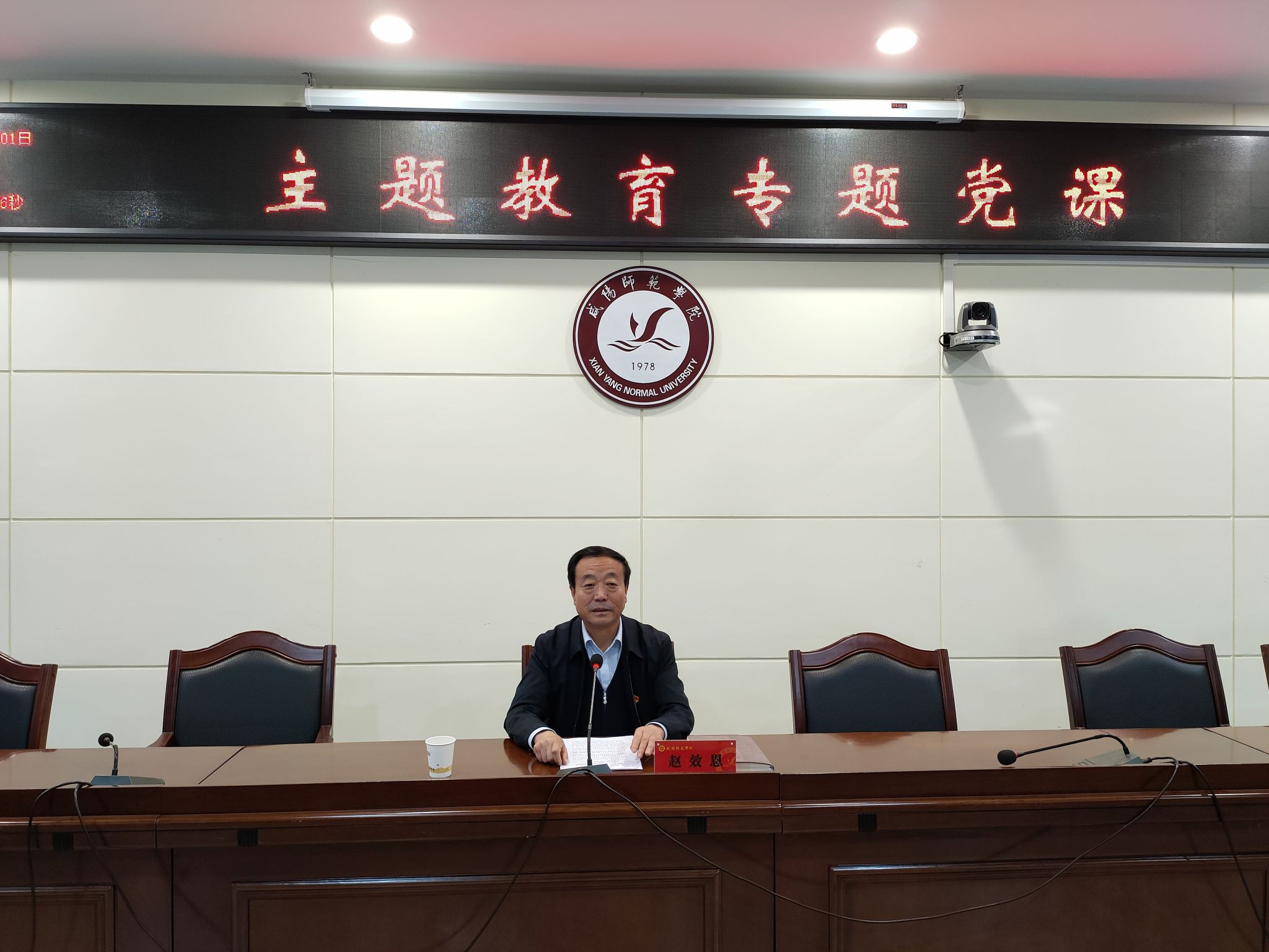 12月1日下午,校党委副书记、纪委书记、监察专员赵效恩以《做“明白人”“带头人”“守护人”“创新人”,为清廉校园建设强根固本》为题,为化学与化工学院、体育学院、机关第四党支部师生党员讲授主题教育专题党课。