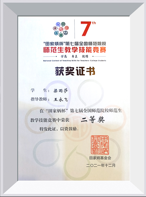 寒假期间,由全国地方高等师范院校教务处长联席会议、田家炳基金会、浙江师范大学主办的“田家炳杯”第七届全国师范院校师范生教学技能竞赛成绩最终揭晓,本次比赛共设汉语言文学、英语、思想政治教育、历史学、数学与应用数学、物理学、化学、生物科学、地理科学等9个学科组,全国各部属师范院校、省属师范院校、地方院校等均派选手参加,是师范生技能竞赛领域参赛人数最多、规格最高的品牌赛事。