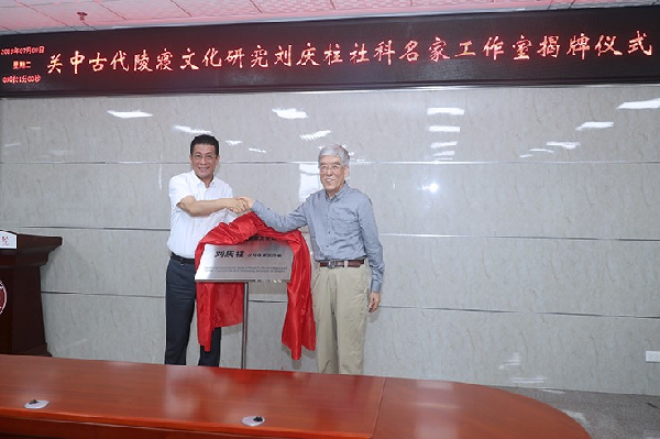 刘庆柱和赵万东为taptap点点关中古代陵寝文化研究刘庆柱社科名家工作室挂牌。