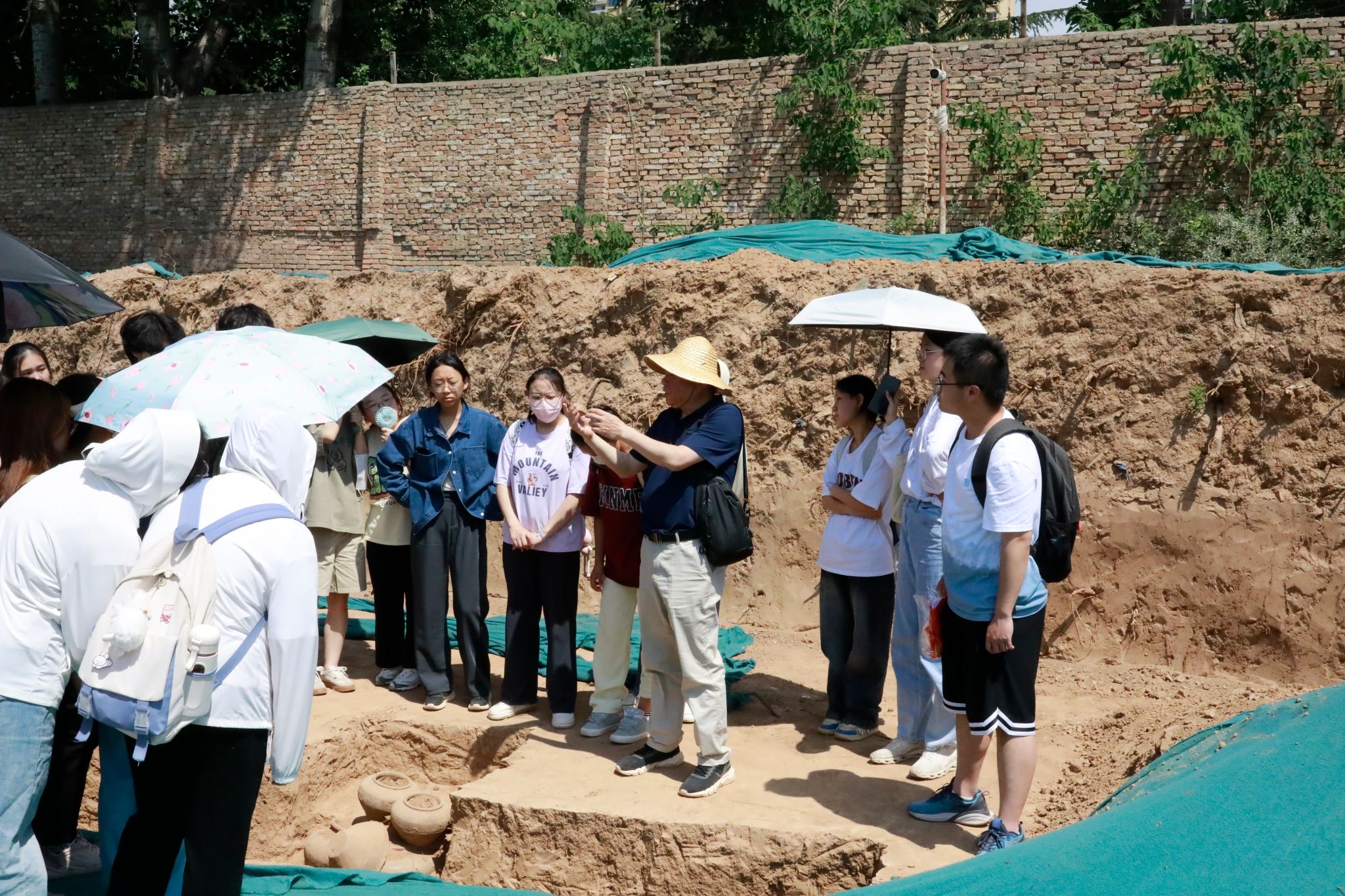 肖教授是我院文博专业负责人,具有国家文物局田野考古个人领队资格,从事考古发掘与研究22年,近期在学校附近的双泉村开展考古发掘。为让文博专业学生近距离接受考古学教育、“沉浸式”学习考古知识、直观感受文化遗产魅力,肖老师将课堂搬到了考古工地。