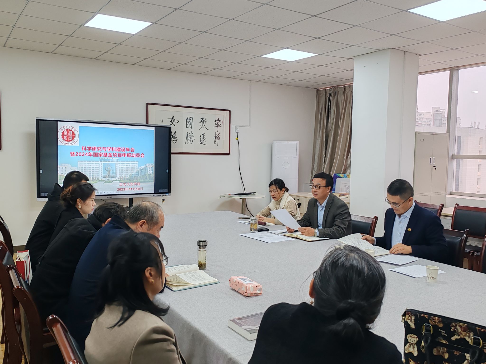 2023年11月10日下午,我院在关中古代陵寝文化研究中心举行2023年度科研与学科建设总结暨2024年国家基金项目申报动员会。学院院长王永飞、副院长王颜及全体专任教师参加,科学研究处处长范广受邀参加,会议由学院院长王永飞主持。