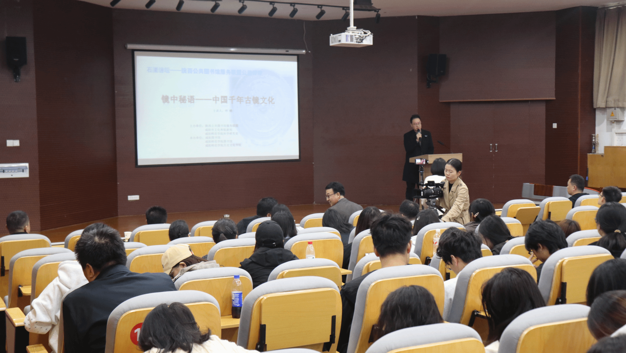 报告伊始,呼啸老师详细介绍了陕西历史博物馆的发展脉络,并通过播放馆方精心拍摄的宣传短片,直观展现了文物保护工作的重要意义与弘扬中华优秀传统文化的时代价值。随后,他从人类对个人形象的探寻切入,追溯镜子的起源演变,指出中国纽镜与西方柄镜及镜架体系的核心差异,深刻阐释了镜子所承载的多元文化内涵——在文学作品中,它既是自我认知的媒介,也是真相揭示的工具,更寄托着古人的情感哲思与精神追求。