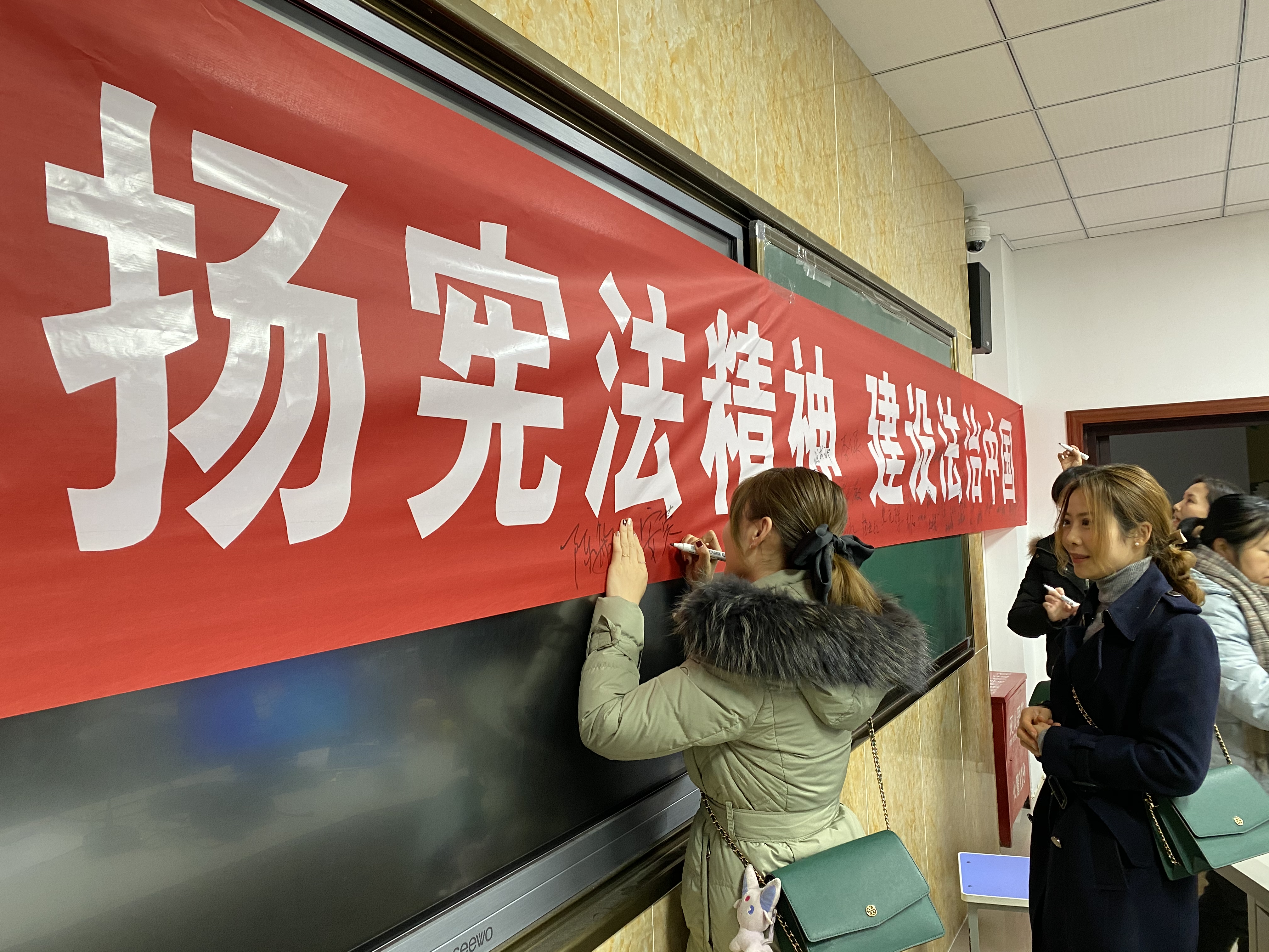 学院通过召开全体教职工集体学习会、主题班会、师生联合签名、微信公众号宪法知识推送等形式,开展宪法学习宣传教育。帮助师生清晰认识我国宪法发展历程、宪法重要意义、公民宪法权利义务等,增强师生的宪法意识,提升学习宪法、尊崇宪法的校园法治文化。