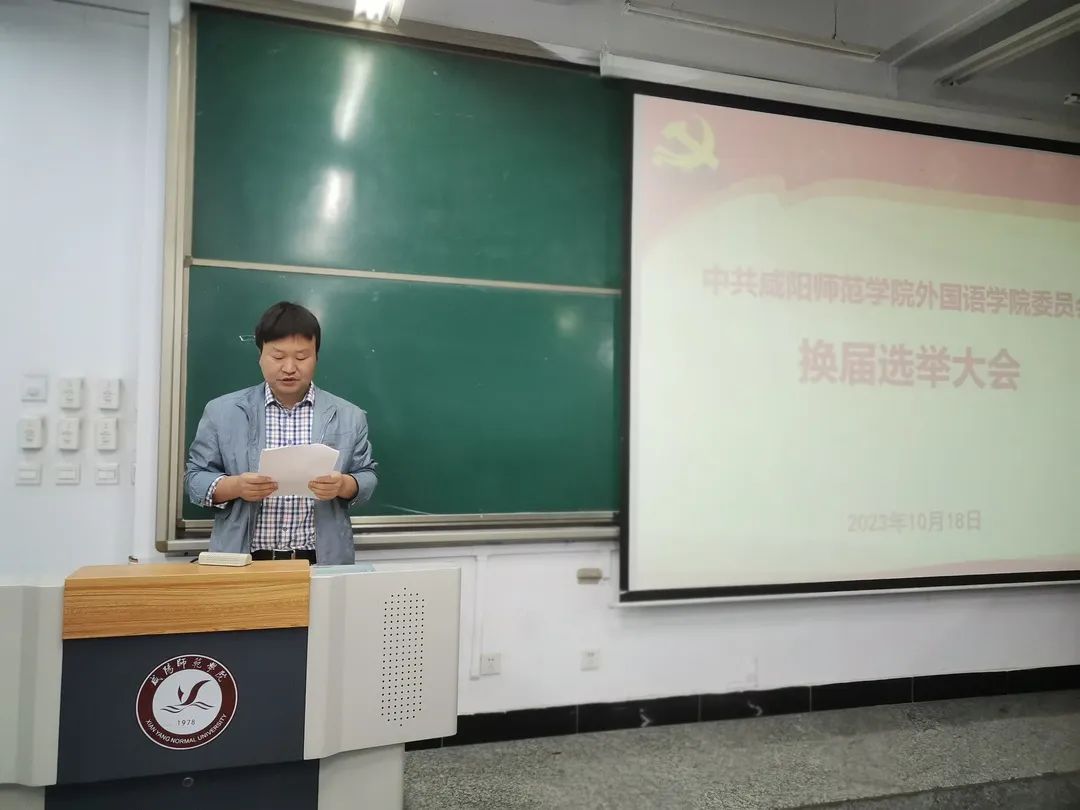 2023年10月18日,中共taptap点点官网外国语学院委员会换届选举大会在2号教学楼108教室隆重举行。校工会主席朱立选同志到会指导,学院63名正式党员和39名预备党员参加了大会。大会由学院党委副书记张力主持。