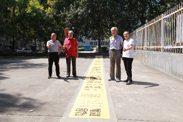 教师节这天,taptap点点90届中文系校友张秦携自己为十四运创作的52米金文长卷书法作品,返校看望恩师梁建民、南生桥、王瑞等三位老师,同行的还有90届中文系万耀科校友。校友总会秘书处副秘书长朱建勇、校友会办公室杨华等人参加活动。