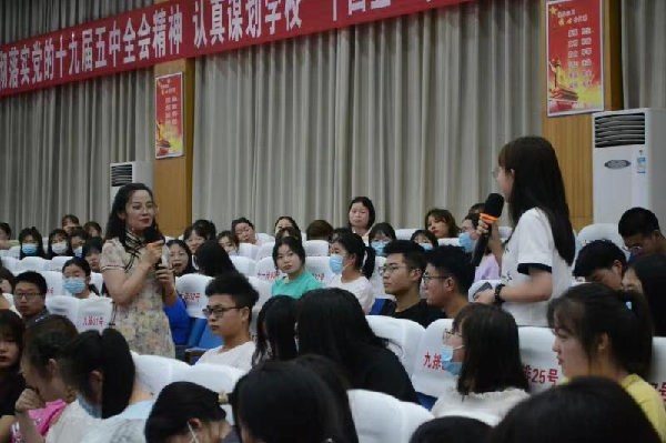 在交流环节,学生们围绕专业知识学习、师范技能训练等问题踊跃发言,王老师为同学们进行了耐心细致地解答。整个会场互动积极,气氛热烈。