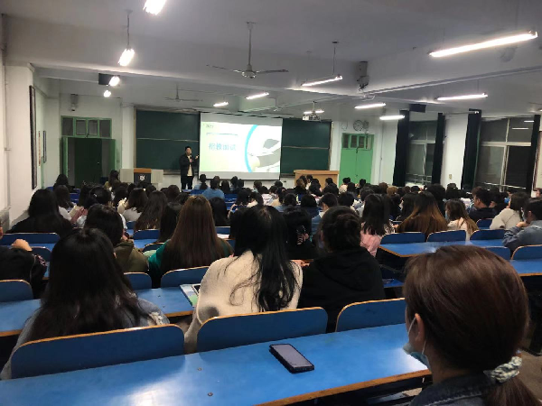 吕品结合自身经历,就报考事业单位如何选择学校、高效开展复习以及面试注意事项等,给学弟学妹们提出很好的建议;李鑫回顾了自己在单位的成长经历,围绕大学生应该以专业和个人特长为依托去寻找适合自己的工作等,与同学们进行了全面分享。在互动环节,两位校友耐心解答了学弟学妹们提出的各类疑问,给他们提供了思路,树立了就业信心。