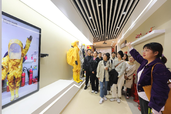 宣讲会结束后,师生们参观了西咸新区消防科普教育基地,“零距离”学习消防知识、体验消防工作,进一步了解了消防这个负有光荣使命的行业。校友张维斌欢迎同学们的到来,并告诉大家,要积极主动参加招聘,了解单位和工作,准备好简历和面试,为未来就业打好基础。