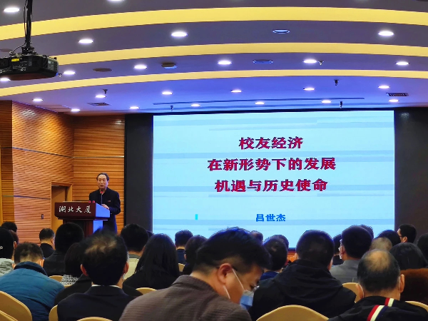 论坛邀请著名学者、“校友经济”首位提出者、校友经济服务中心首席经济学家、中央财经大学文化与金融研究中心吕世杰教授作了题为《校友经济在新形势下的发展机遇和历史使命》的开场报告。吕世杰教授指出,校友经济以母校和校友为载体,目的是通过校友与母校之间天然的纽带,长期不断循环推动相关经济活动的发展。