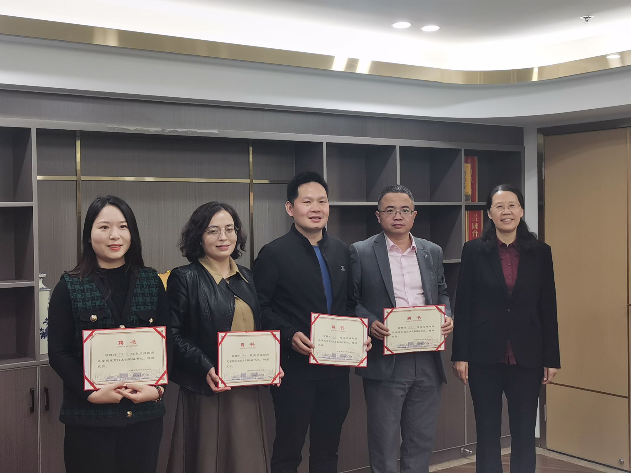 3月14日下午,周群英一行前往东莞看望校友,召开东莞校友代表座谈会。来自东莞第一中学、东莞理工学院、松山湖华为、东莞作为电子、海郡机械配件、汇新电子科技等单位的11位校友受邀参加座谈会。会上酝酿选举产生了东莞校友会班子成员,周群英副书记为名誉会长83届数学系校友孟胜奇、83届化学系校友段雄春及其他班子成员颁发了聘书。东莞校友会班子成员积极表态,将带领咸阳师院广大东莞校友团结聚力、互助合作,继续服务于东莞经济文化教育事业发展,服务母校建设,为建好东莞校友心灵家园不懈努力!