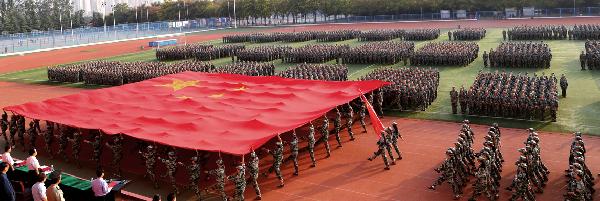 在激昂雄壮的国歌声中,3544名新生整装列队,以昂扬饱满的精神状态迎接国旗入场。在随后的汇报表演中,各军训方队分别表演了队列表演、匕首操表演、军体拳表演、全民运动表演、花样队列表演和防身擒敌配套表演等科目。表演过程中同学们精神饱满,动作规范,队列整齐,气势雄壮,充分展示了军训成果,表演精彩,赢得了全场阵阵掌声。