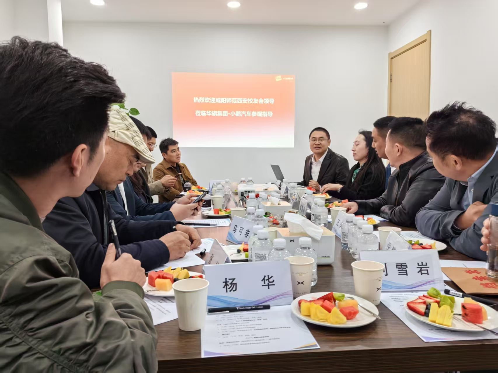 15:40,在小鹏汽车4S店会议室召开座谈会,taptap点点官网西安校友会会长王彪热情致辞,向李文彪校友及华旗集团表达诚挚感谢,对拨冗参加本次走访活动的母校校友总会老师、咸阳校友分会会长马可非、机电校(农机校)校友分会会长郭耀利及其他12位校友的到来表示热烈地欢迎。