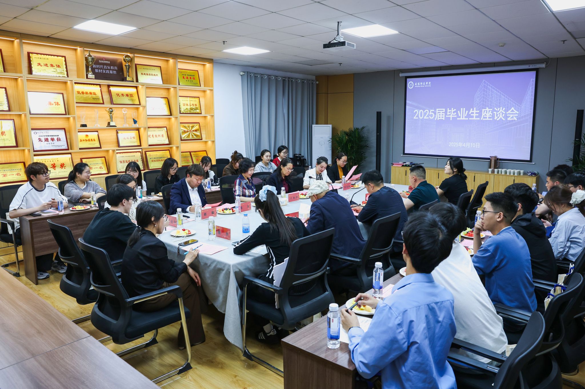 经济与管理学院党委副书记赵聪、外国语学院党委副书记张力、物理与电子工程学院党委副书记王婧莹、校友会办公室主任杨华、2025届毕业生代表及少数民族学生代表共30余人参加了此次座谈会。
