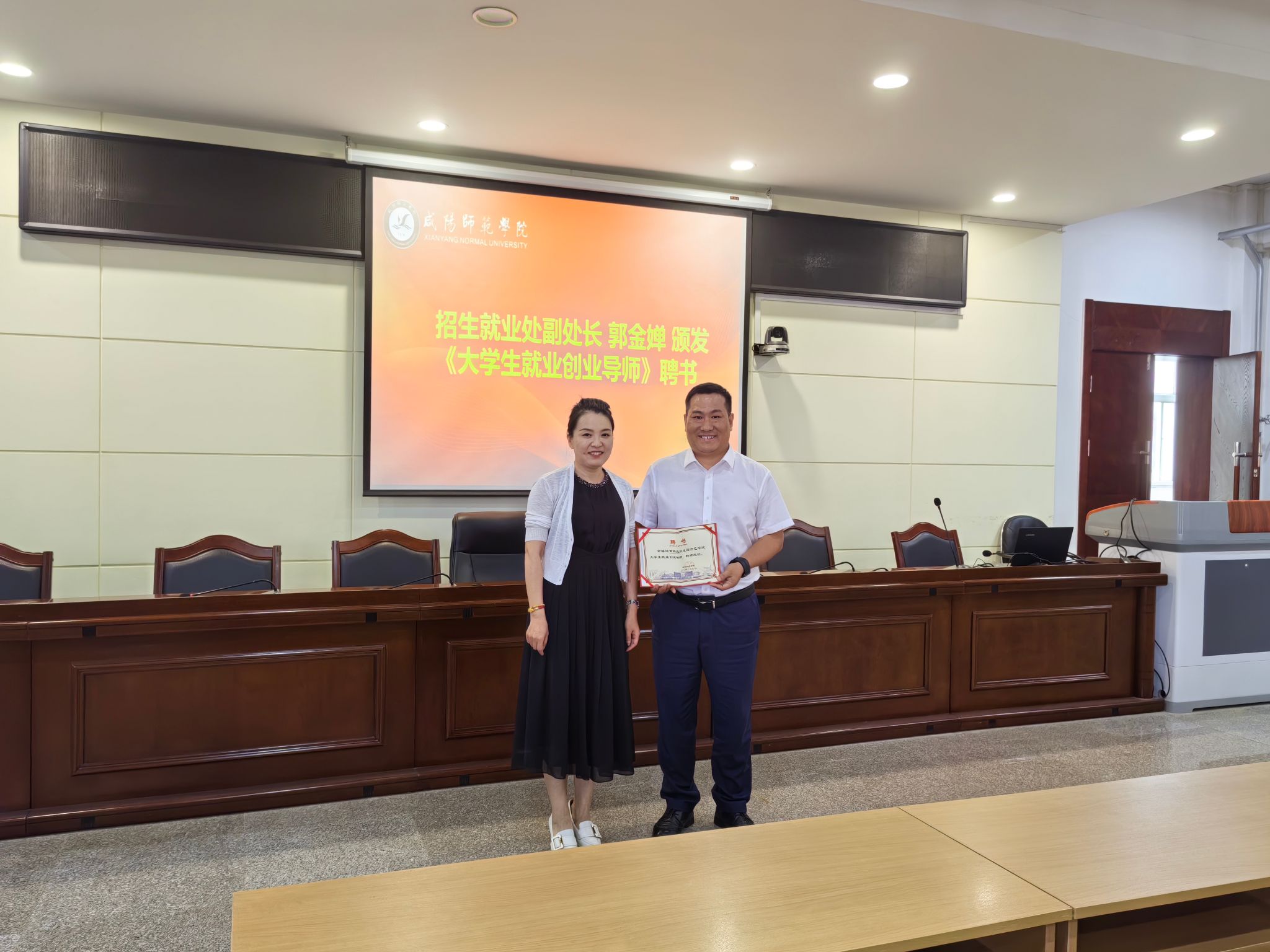 报告会在1号教学楼920会议室举行。数学与统计学院学工办主任朱墩子主持会议。招生就业处副处长郭金婵为黄振良校友颁发了“大学生就业创业导师”聘书。