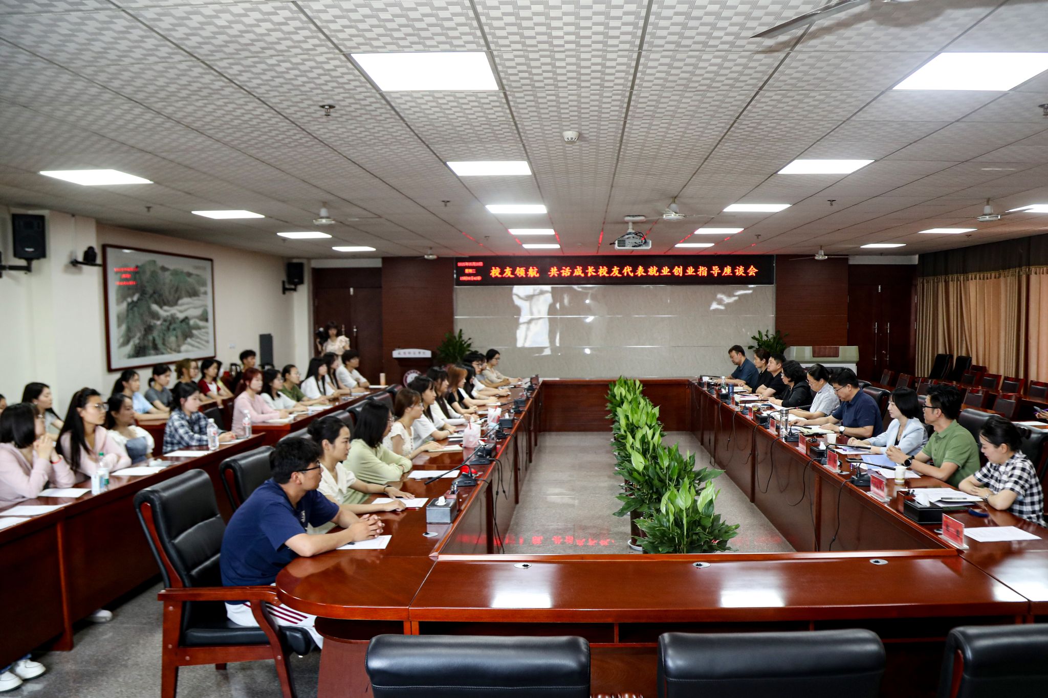 招生就业处副处长郭金婵,外国语学院党委副书记张力、马克思主义学院党委副书记白露,以及来自外国语学院、马克思主义学院、经济与管理学院、地理与环境学院的45名学生代表参加了座谈会。
